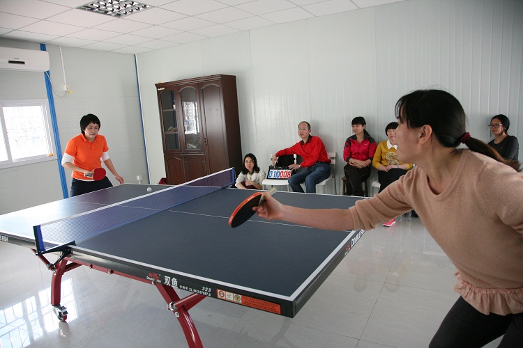 在另一賽區(qū),同時(shí)展開搏殺的還有室內(nèi)女子乒乓球比賽。有堪稱乒乓一姐的張梅很快殺進(jìn)決賽,冠軍寶座十拿九穩(wěn)。爭奪最為激烈的是半決賽爭奪戰(zhàn),原來被人看好的人力資源部女將蔣艷軍比賽爆出冷門,以二比三不敵監(jiān)理公司的廖紹芳,無緣決賽。三、四名的爭奪在人力資源部兩位女將之間進(jìn)行。平時(shí)性格開朗的張小奮上場霸氣十足,實(shí)力略勝一籌的她一開始因不適應(yīng)對方的旋轉(zhuǎn)發(fā)球,丟分較快,當(dāng)她破解對方發(fā)球后,反敗為勝,比分拉開,張小奮一路高歌笑到最后獲得第三名。