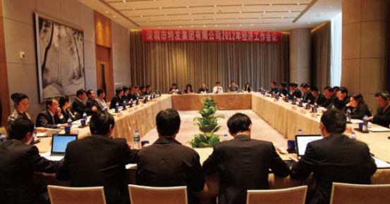 2月23日至24日,集團召開2012年經(jīng)濟工作會議,總結(jié)2011年的經(jīng)營工作情況,分析當前面臨的形勢和下一步經(jīng)營工作主要任務(wù),研究2012年落實“十二五”規(guī)劃及經(jīng)營工作的思路與措施。會議由劉愛群董事長主持,集團公司部門正職以上管理人員、全資控股企業(yè)正職領(lǐng)導(dǎo)及財務(wù)總監(jiān)(或財務(wù)經(jīng)理)、參股企業(yè)特發(fā)方首席產(chǎn)權(quán)代表參加了會議。