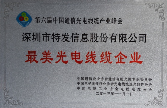 會(huì)議表彰了10家“中國(guó)最美光電線纜企業(yè)”和22名“中國(guó)最美光電線纜人”。特發(fā)信息被評(píng)為最美光電線纜企業(yè),特發(fā)信息光纜分公司陸秉義總經(jīng)理和張偉民副總經(jīng)理當(dāng)選最美光電線纜人。