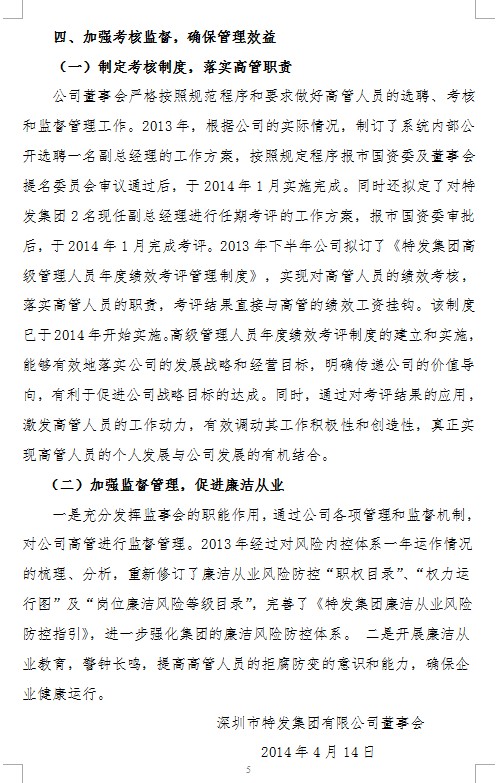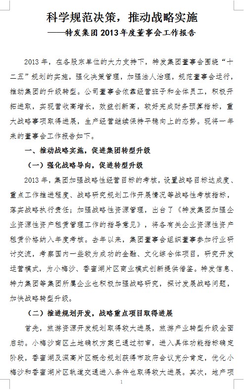 科學(xué)規(guī)范決策,推動戰(zhàn)略實施——特發(fā)集團2013年度董事會工作報告